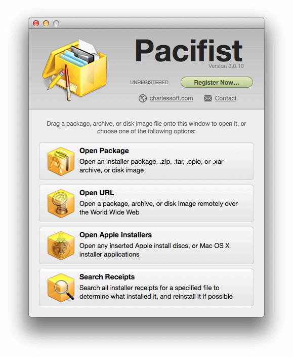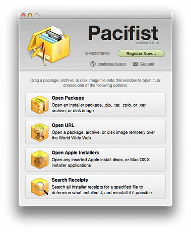 Pacifist is a shareware utility. You can use it for free, or pay $20.00. If you use it for free, you will have to wait 15 seconds before you can use it each time it’s launched.